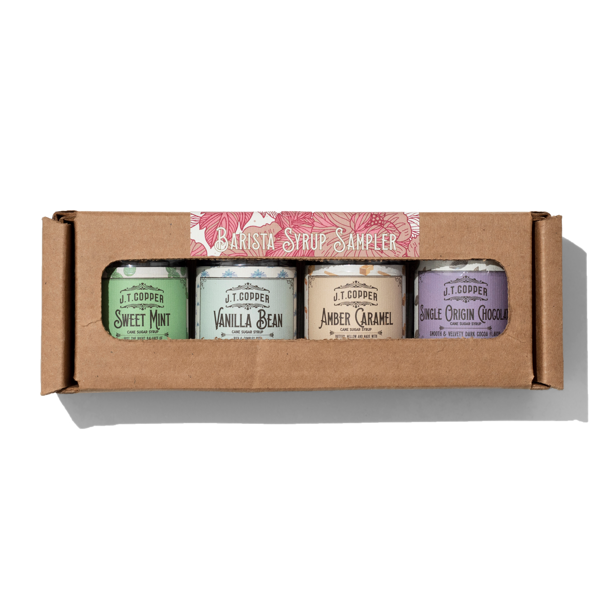 The Barista Syrup Sampler contains (four) 2 fl oz jars and includes a handy recipe card, perfect for sparking your imagination. Each of the flavors chosen for this set were developed in our café with the help of baristas and customers alike. These flavors blend beautifully with milk and perk up your morning cup of joe. Not into coffee? Add a little flavor to steamed milk or make you own decadent hot chocolate.